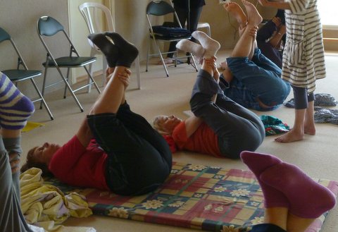 *תרגול בעמידה ליד הקיר, בישיבה ושכיבה